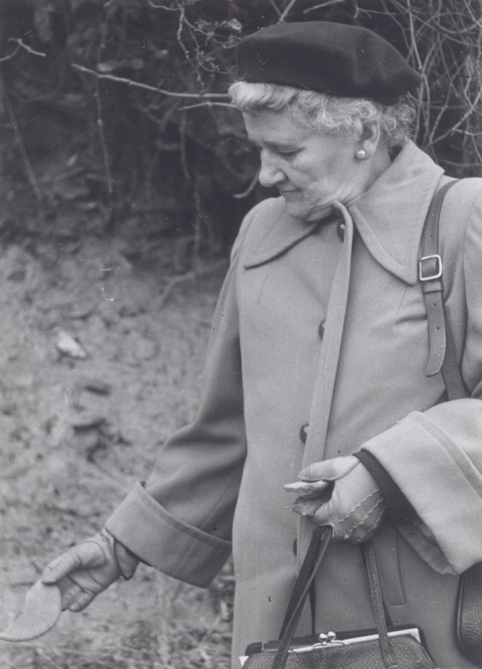 - Dorothy Blair holding potsherd, Bizen, 1954